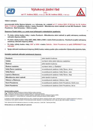 ČD - Výlukový jízdní řád od 17.5.2022 do 26.5.2022