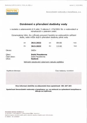 Dne 29.4.2022 bude pobočka ČP Dolní Poustevna otevřena: