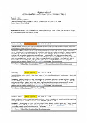 VÝSTRAHA PŘEDPOVĚDNÍ POVODŇOVÉ SLUŽBY ČHMÚ