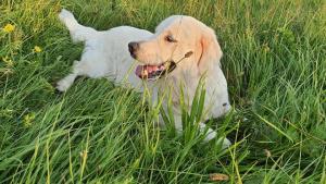 Volám o pomoc. Utekl mi 10 měsíců starý zlatý retrívr. Slyší na jméno Freddy, je skoro bílý, má šedý postroj a vláčí za sebou šedé přepínací vodítko. Utekl v Dolní Poustevně u hřbitova asi kolem 14h. Je hodný, ale vyděšený, strhl na sebe popelnici. Mohl přeběhnout i do Německa. Prosím reagujte, jen