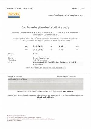 Odstávka energie v Dolní Poustevně 13.10.2021