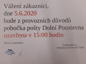 Dočasná změna otevírací doby na poště v Dolní Poustevně.