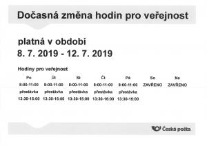 Dočasná změna otvíracích hodin pošty, 27. týden