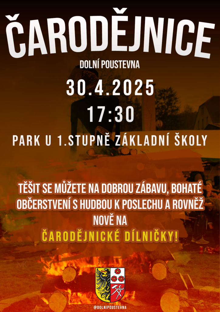 Zveme vás na oslavu Čarodějnic, která se koná 30. dubna 2025 v 17:30 v parku u 1. stupně základní školy v Dolní Poustevně. Těšit se můžete na skvělou zábavu, chutné občerstvení, hudbu a nové čarodějnické dílničky!