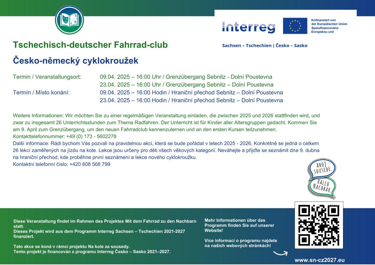 1. lekce: 9. dubna 2025 v 16:00 na hraničním přechodu Dolní Poustevna - Sebnitz
