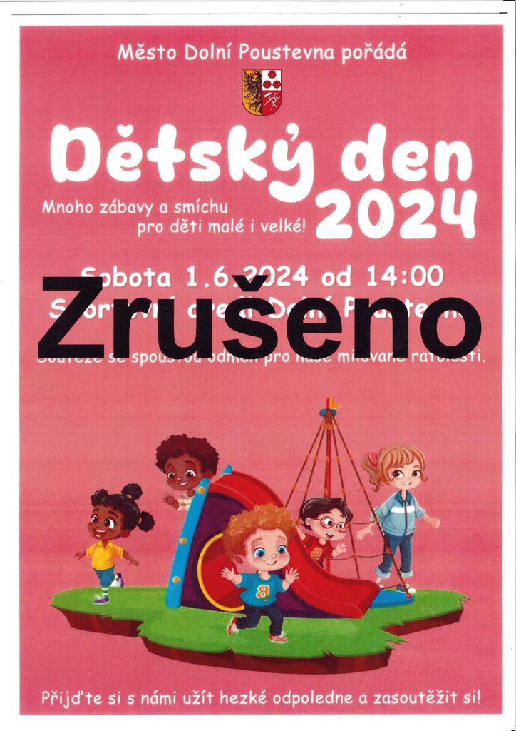 Z důvodu předpovídaného deštivého počasí jsme nuceni zrušit sobotní oslavu Dne dětí. O náhradním termínu vás budeme informovat.