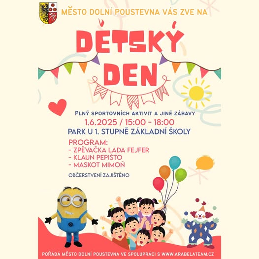 Město Dolní Poustevna pořádá v neděli 1. června 2025 zábavné odpoledne plné sportovních aktivit a vystoupení. Těšit se můžete na klauna Pepišta, zpěvačku Ladu Fejfer a maskota MIMOŇ. Akce se koná od 15:00 do 18:00 v parku u I. stupně ZŠ.