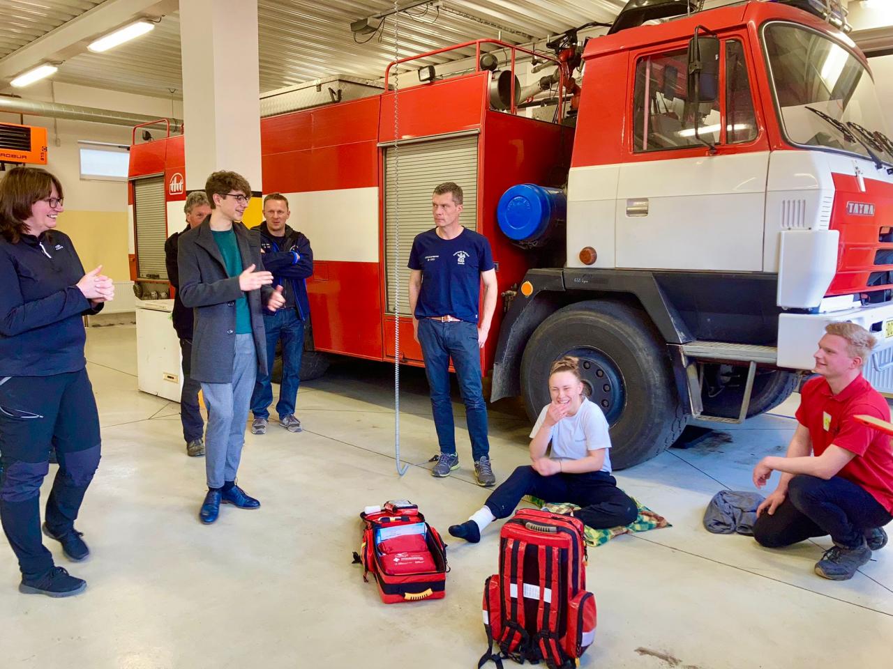 Hasiči z Dolní Poustevny společně s hasiči z Goßdorfu se školí v poskytování první pomoci.