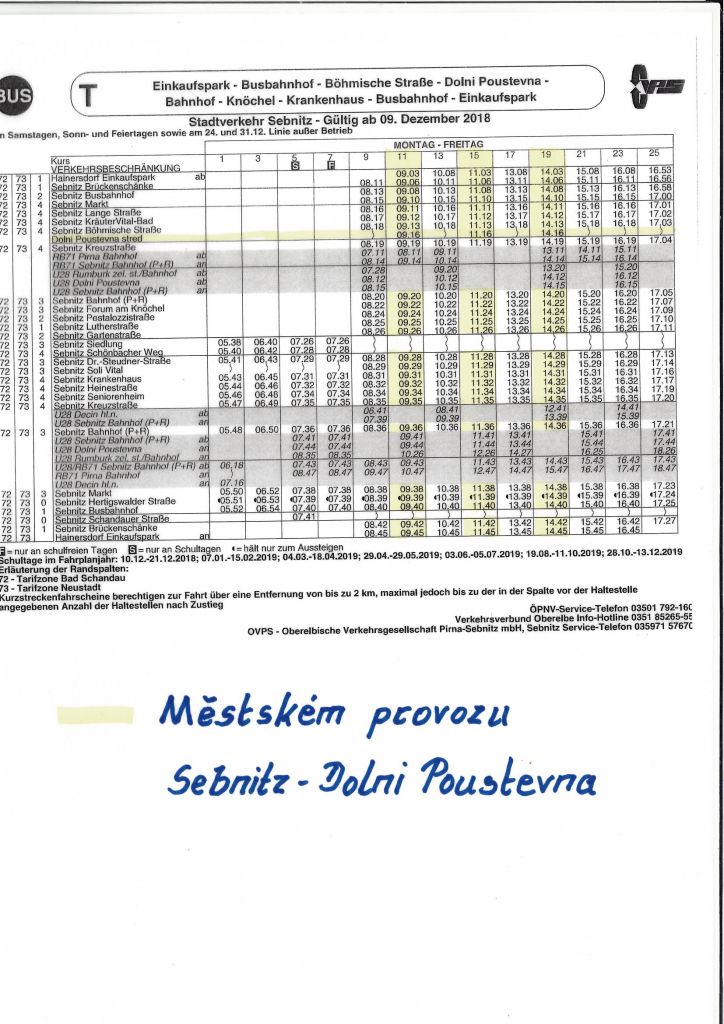 Jízdní řády Sebnitz - Dolní Poustevna/zpět