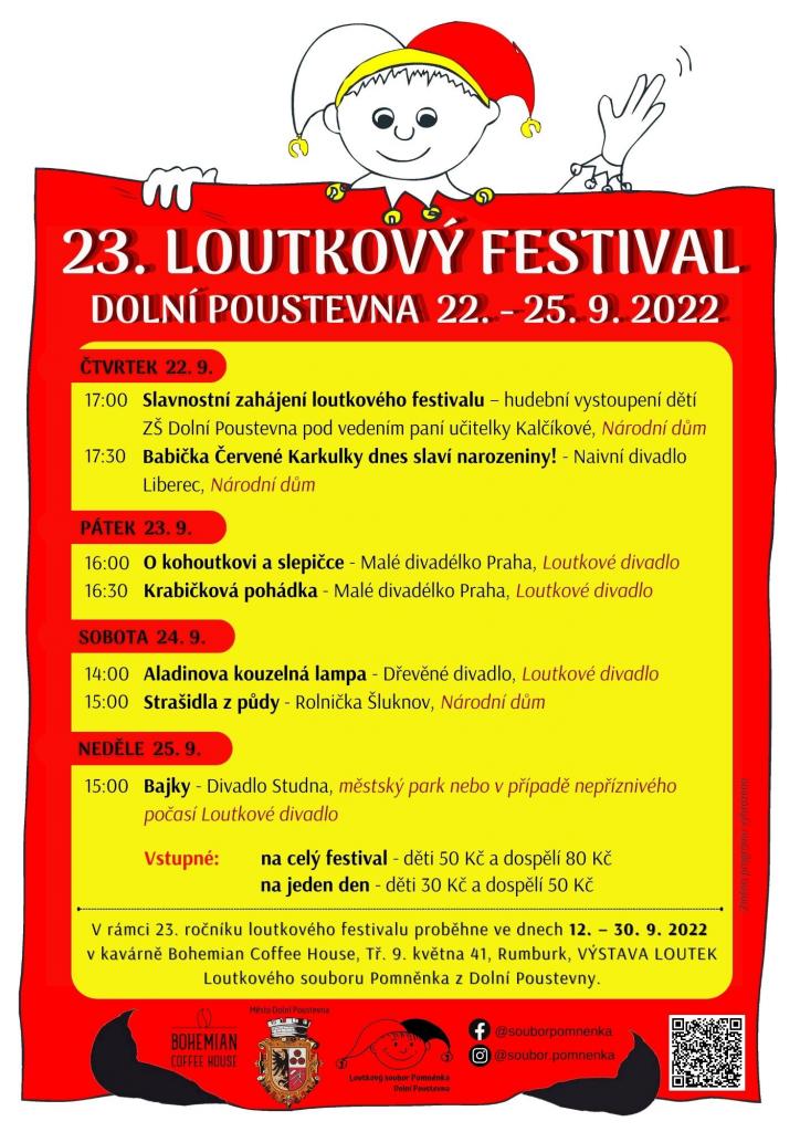 Loutkový soubor Pomněnka Vás srdečně zve na 23. loutkový festival do Dolní Poustevny, který se uskuteční ve dnech 22. - 25. 9. 2022.