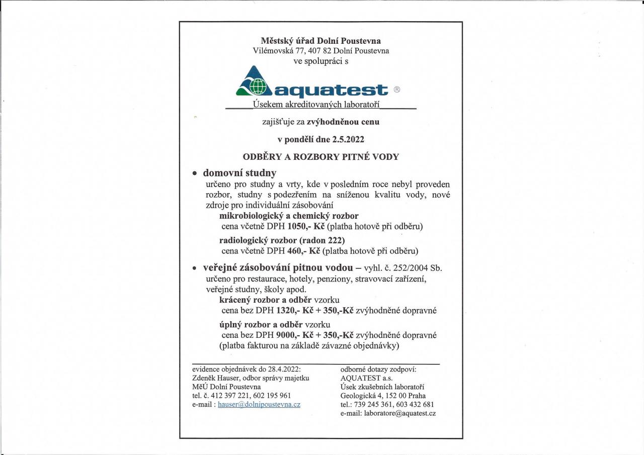 Aktuality - ODBĚRY A ROZBORY PITNÉ VODY