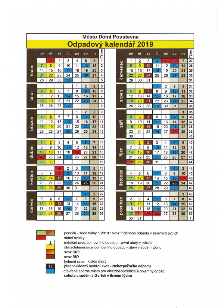 Odpadový kalendář 2019