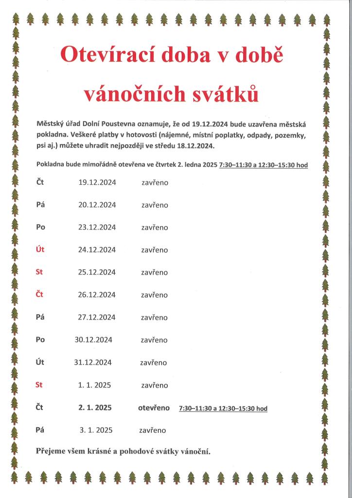 Otevírací doba v době vánočních svátků