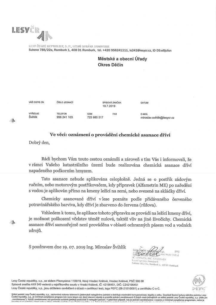 Aktuality - Oznámení o provádění chemické asanace dříví