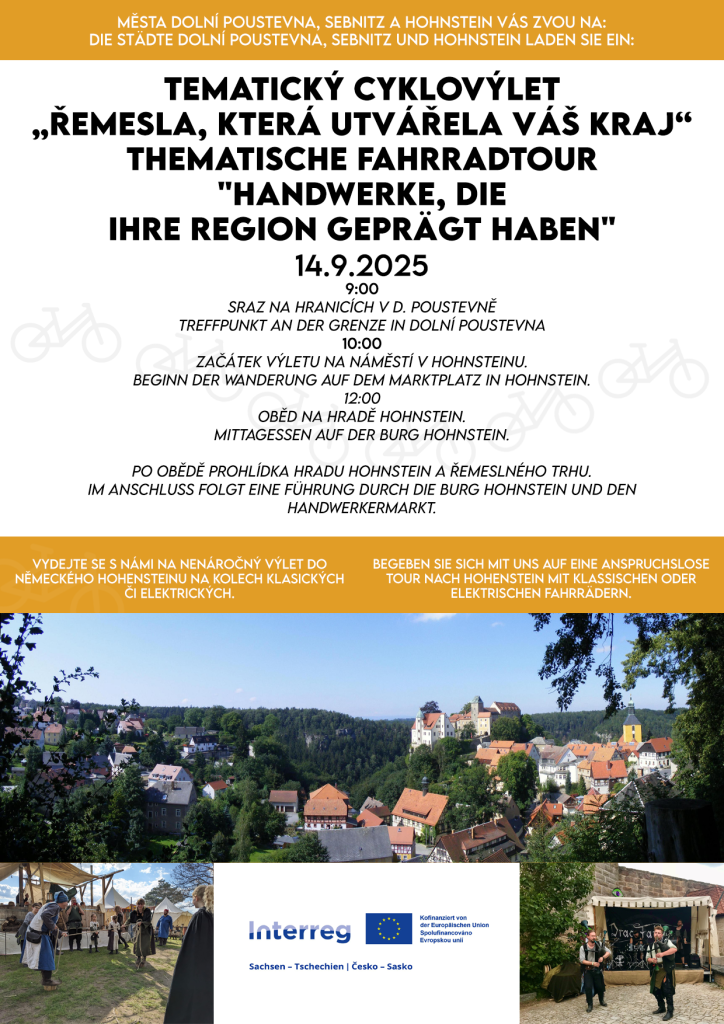 V rámci projektu "Na kole za sousedy" se uskuteční 3. společná akce: Tematický cyklovýlet "Řemesla, která utvářela náš kraj".