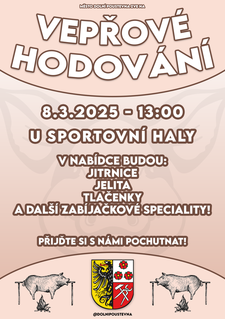 Dolní Poustevna zve všechny na tradiční zabíjačku, která se koná v sobotu 8.3.2025 u sportovní haly. V nabídce budou jitrnice, tlačenky a další lahůdky. Přijďte si pochutnat a užít si skvělou atmosféru!