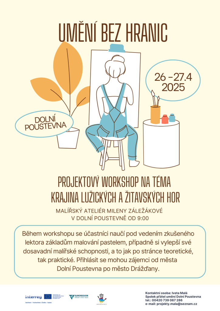V Dolní Poustevně se uskuteční workshop zaměřený na malování krajiny Lužických a Žitavských hor. Pod vedením zkušeného lektora se účastníci seznámí se základy malování pastelem a mohou své dovednosti dále rozvíjet. Akce je určena pro zájemce od města Dolní Poustevny po město Drážďan.