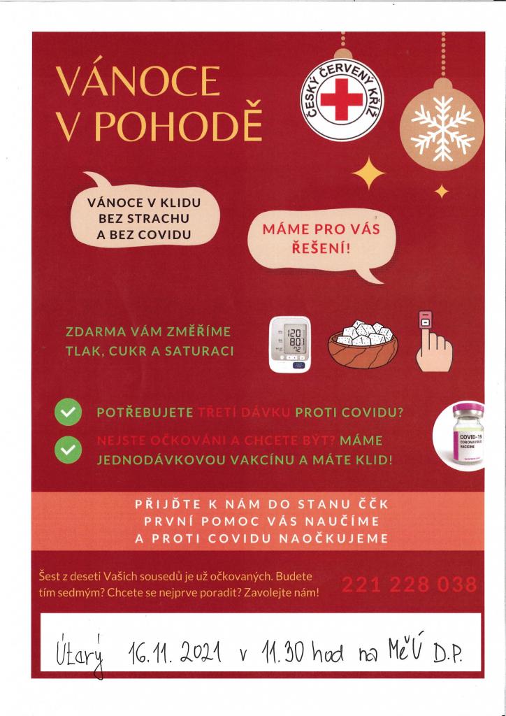 V úterý 16.11.2021 bude u MěÚ v Dolní Poustevně připraven stan Českého červeného kříže, kde vám zdarma změří tlak, cukr a saturaci.