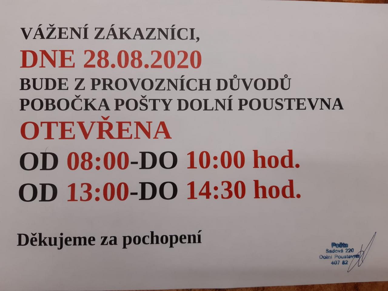 Aktuality - Změna otevírací doby pošty v Dolní Poustevně
