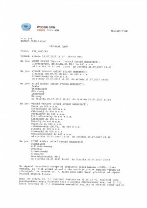 Seznam plánovaných odstávek v období od 29.06.2017 do 14.07.2017 pro obec Dolní Poustevna