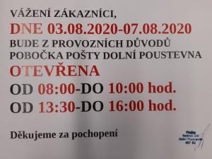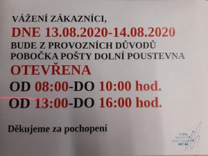 Změna otevírací doby pošty v Dolní Poustevně