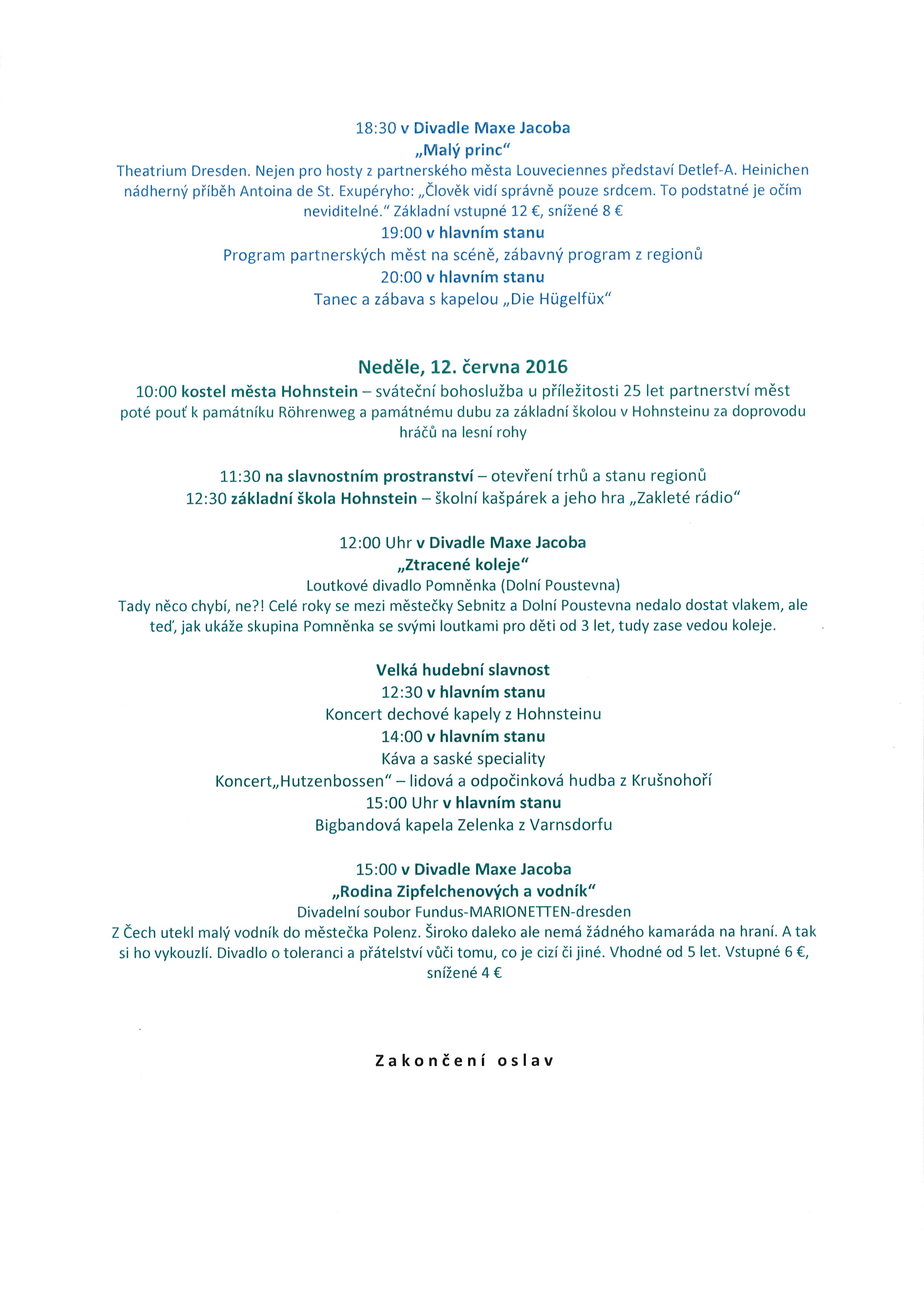 Časový harmonogram v Hohnsteinu