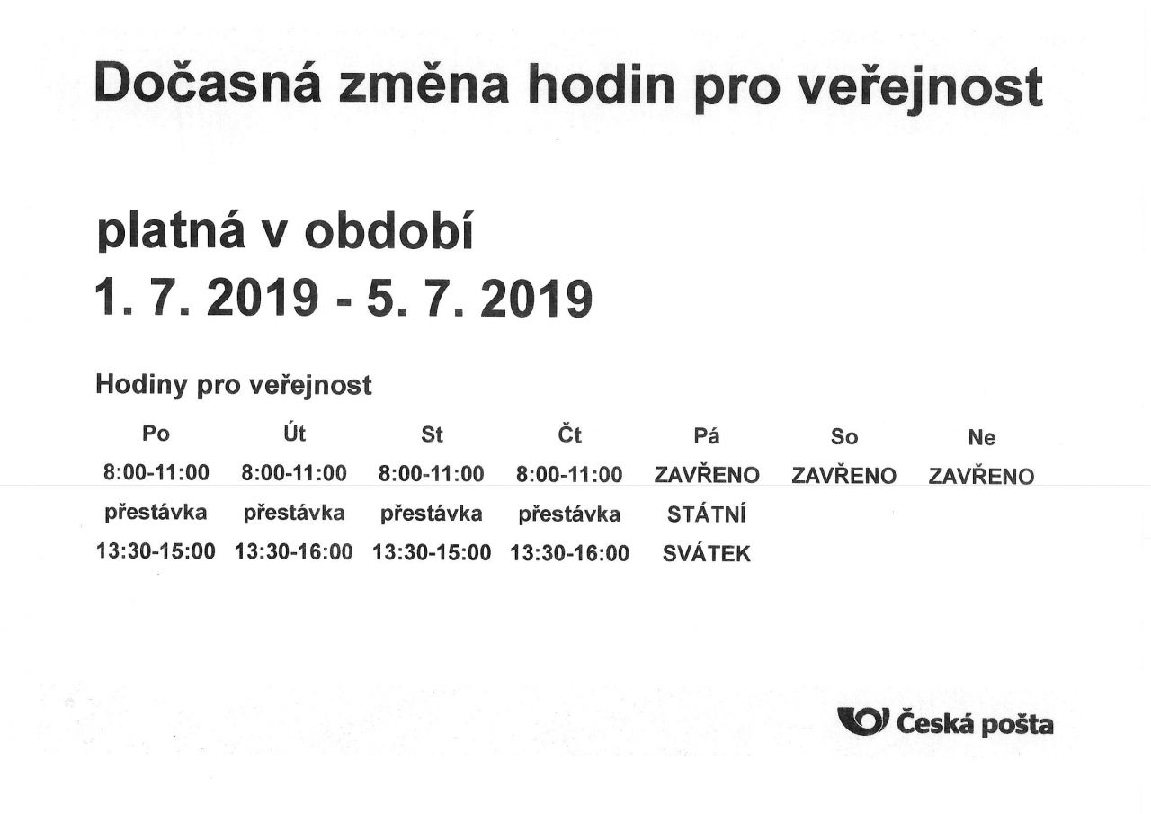 Dočasná změna otvíracích hodin pošty, 27. týden