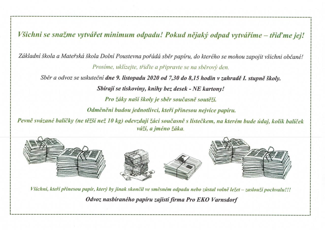 Připomínáme sběr papíru v ZŠ.