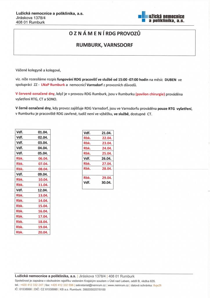 Provoz rentgenu duben