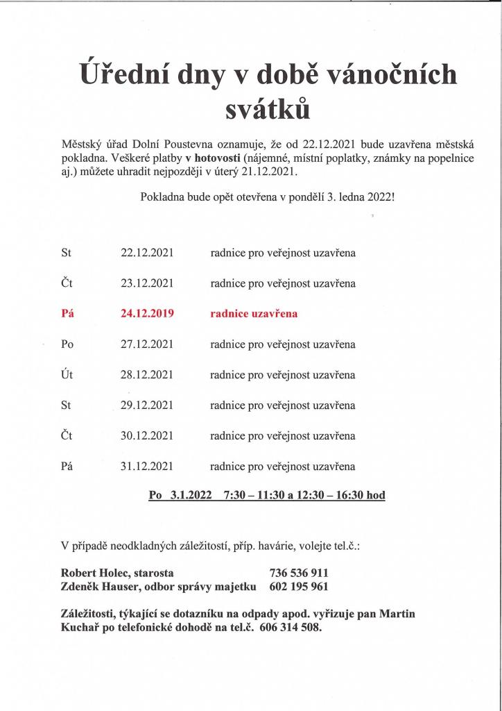 Úřední dny v době svátků