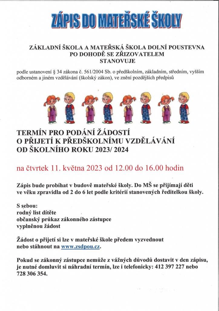 ZÁPIS DO MATEŘSKÉ ŠKOLKY